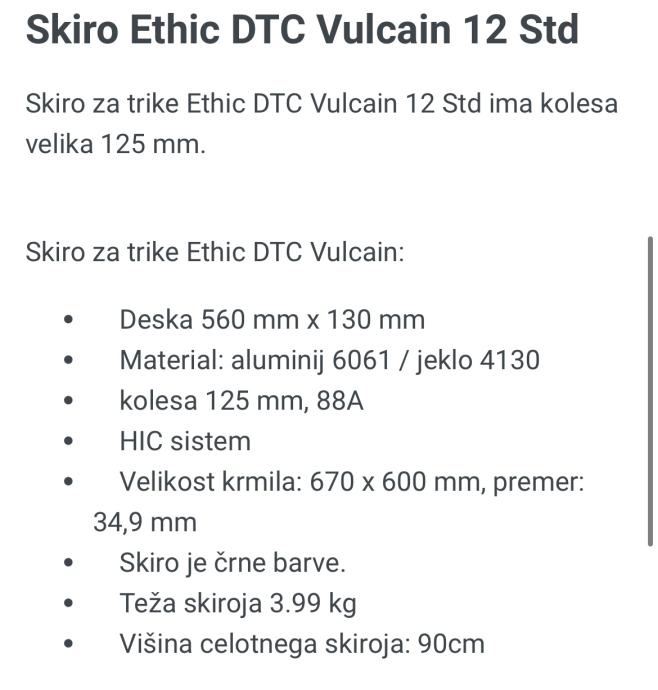 Prodam Ethic DTC Vulcain 12 Std skiro za trike. Skiro je zelo lepo ohranjen. Originalna cena je 300 evrov.
