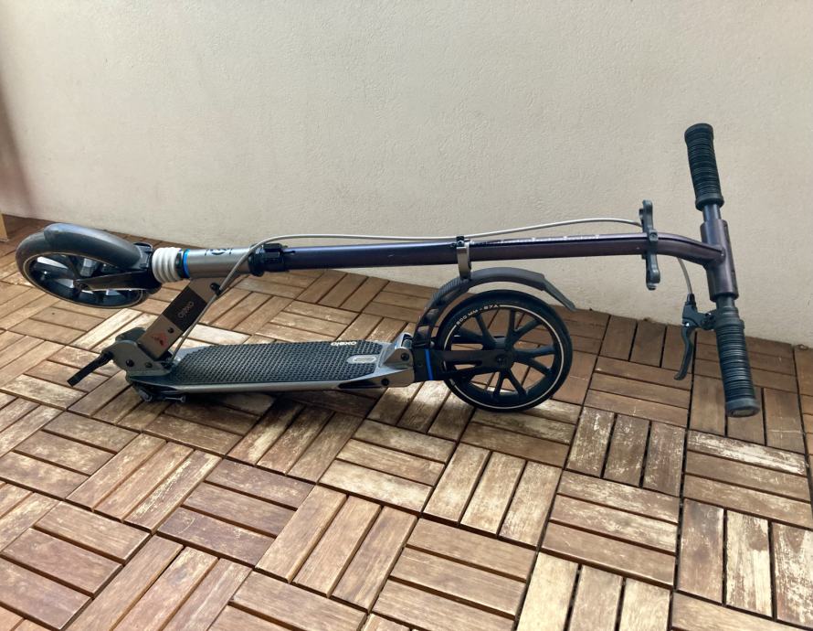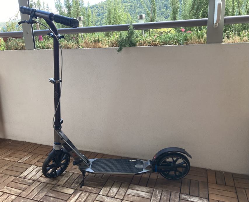 Prodam odlicno ohranjeno in malo rabljeno skiro Oxelo T7 XL. Skiro je lahko, tudi zlozljivo in enostavno prenosljivo. Kolesa so gumijasta z visoko odbojnostjo, zato je pospesevanje z manj napora, manj trenja in upora.