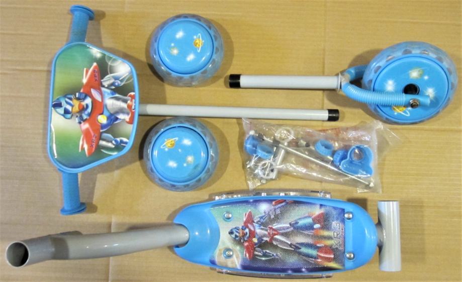 Prodam nov, nerabljen trikolesni skiro skuter, XR3 ACTION ROBOT kot na sliki. Obremenitev do 20 kg. Primeren za otroke od 2. leta naprej. Ogled in prevzem v Celju po 16 uri, lahko pošljem po pošti. mob: OЗl-782-2O8