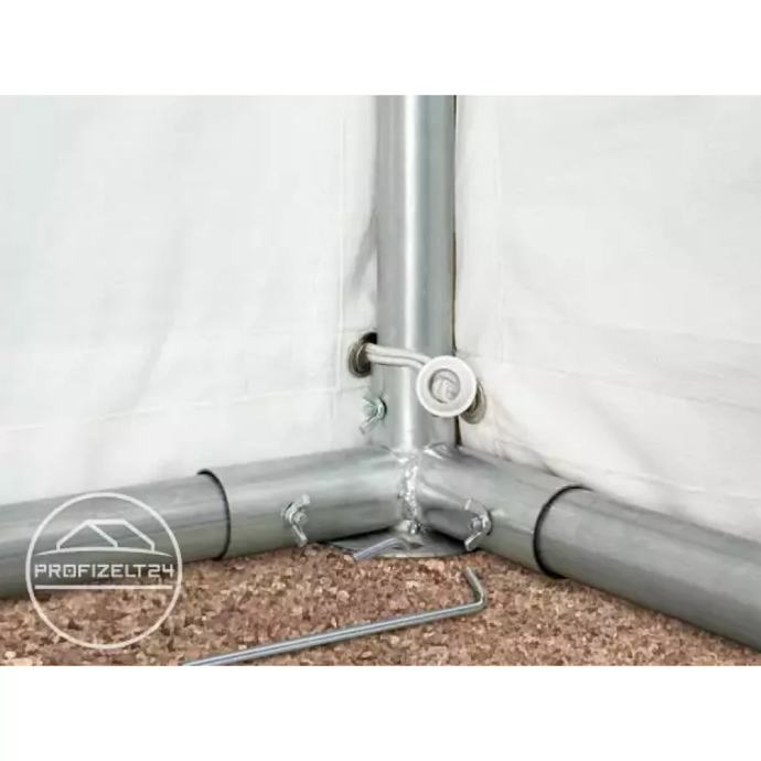 Šotor za skladiščenje je idealen za daljšo sezonsko uporabo. Zahvaljujoč posameznim ponjavnim elementom ponuja številne izvedbene izvedbe in s tem visoko stopnjo prilagoditve. V vrhunski kakovosti ima šotor ojačane stebre s pritrdilnim talnim okvirjem in dodatne ojačitve strehe. Močna približno 750 g / m² težka PVC ponjava je zaradi varjenih šivov odporna na UV žarke in 100% vodotesna. Visok faktor zaščite pred soncem 80+ idealno ščiti skladiščeno blago pred UV sevanjem.