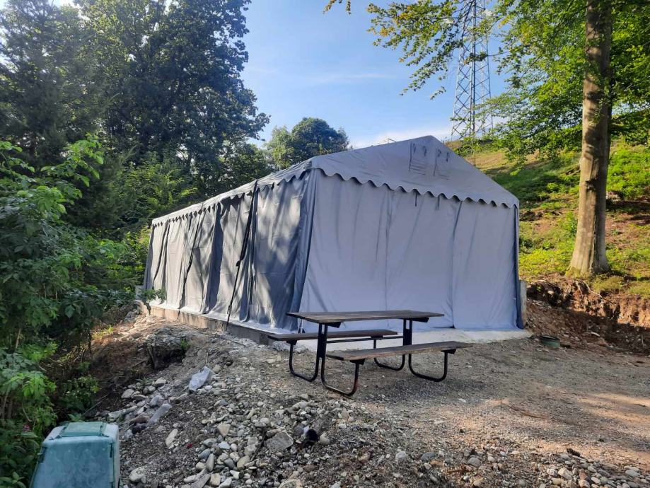 Neprekinjena strešna ponjava drži konstrukcijo skupaj, zato je pomemben del stabilnosti. Vsi šivi so varjeni in nešivani. Obodna zaslonka uravnava prezračevanje in preprečuje prepih. Zlasti nekatere strehe niso vodotesne – pri nas dobite 100% nepremočljivo streho iz nepremočljivega materiala.