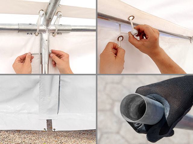 Ta konstrukcija šotora je dobra naložba, saj kljubuje vetru in vremenu ter je zasnovana za uporabo skozi celo leto. Šotor za skladiščenje svojo izjemno stabilnost dolguje povečani vsebnosti jekla, ki je vgrajena v njegove izjemno močne noge in dodatne ojačitvene elemente na strehi in tleh. Na ta način se lahko padavine in vremenske sile optimalno razpršijo, šotor pa nudi zanesljivo zaščito skozi vse leto. Pocinkane jeklene cevi nudijo odlično zaščito pred korozijo in vremenskimi vplivi ter so manj občutljive na udarce kot prašno lakirane jeklene cevi. Debelina materiala je prilagojene visokim zahtevam, podaljšuje dobo uporabe šotora, kar ga naredi izjemno robustnega in vzdržljivega.