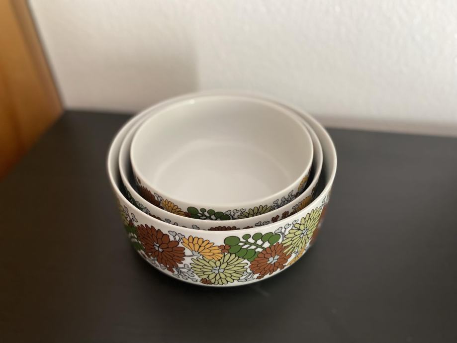 Arzberg Hutschenreuther, priznana nemška blagovna znamka znana po visokokakovostni porcelanasti posodi in inovativnem dizajnu. Premer skled je 22 cm, 20 cm in 18 cm. Blagovna znamka, ustanovljena leta 1887, združuje estetsko dovršenost in funkcionalnost, pri čemer sodeluje z mnogimi priznanimi oblikovalci. Z združitvijo z Hutschenreutherjem, ustanovljenim leta 1814, ki slovi po svojih elegantnih in luksuznih porcelanastih izdelkih, Arzberg Hutschenreuther združuje bogato tradicijo, prestiž in inovacije v porcelanasti industriji.