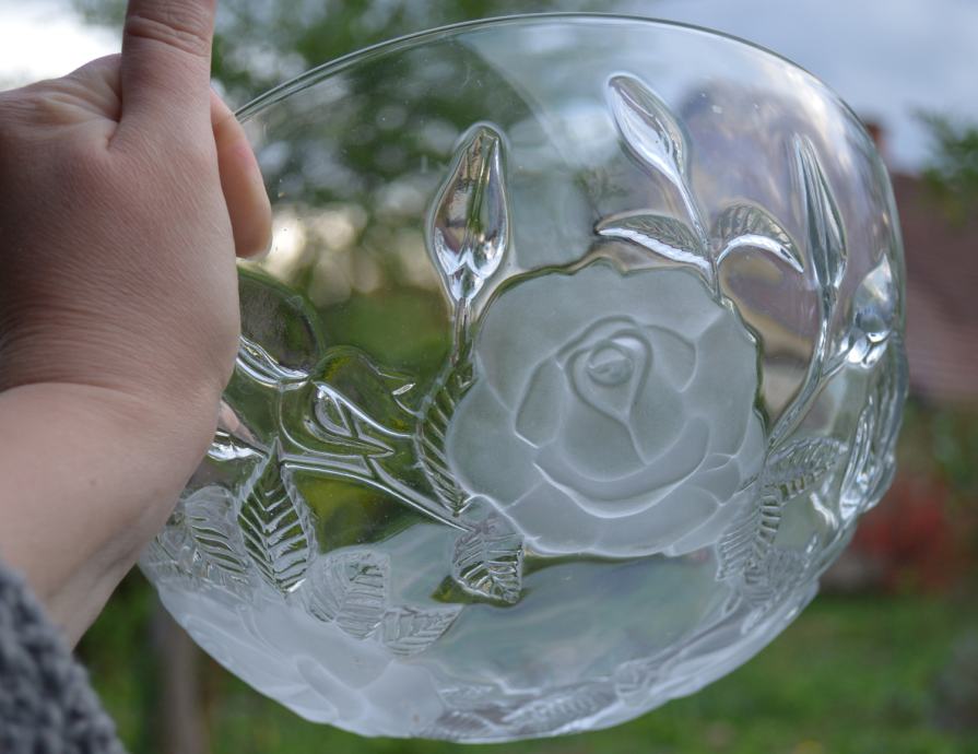 Prodam zelo lepo kristalno skledo z vzorcem vrtnic. Je kot nova. Premer je cca 25 cm.