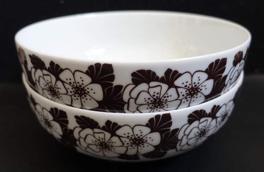 Skledi imata na spodnjem delu rjavo črto in temno rjav vzorec.