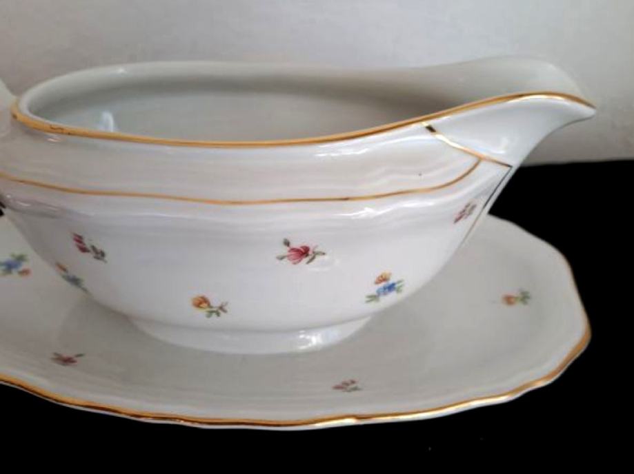 Okrašena z drobnimi svetlicami in zlato obrobo.
