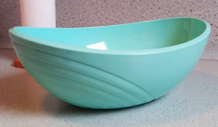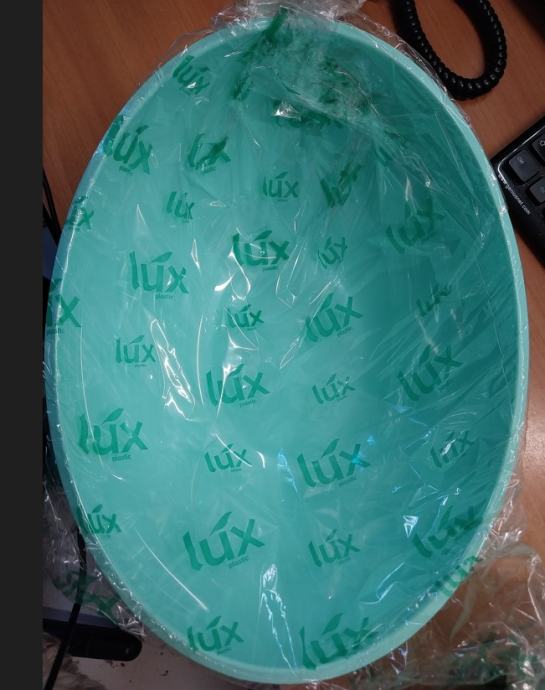 Dimenizje: 32 x 25 x 12 cm 3 litre, jedilna plastika, dobljene v službi za darilo, stare eno leto, na voljo tri kom po deset eur.