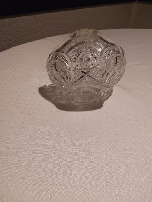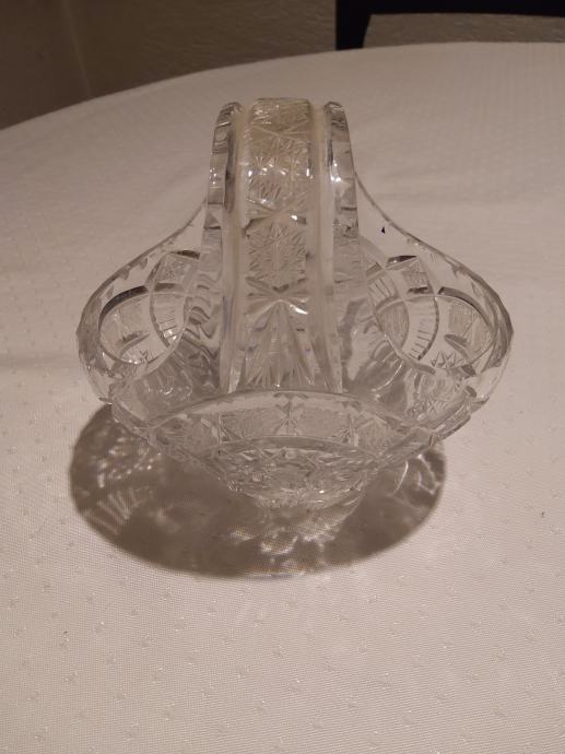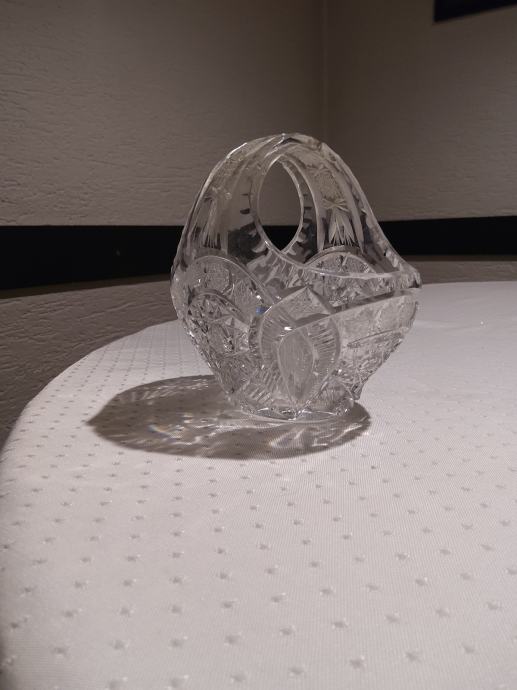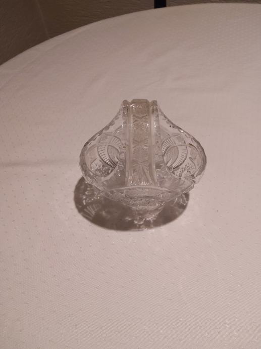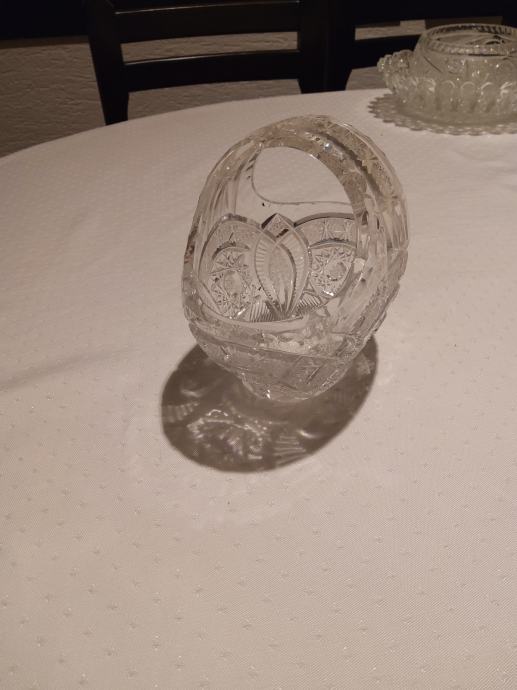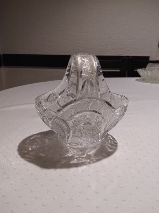 Prodam kristalno košarico - skledico za bonbone, kekse, dišave za stanovanje. Poškodovana vendar uporabna. Višina cca. 15 cm, širina 15 x 10 cm.