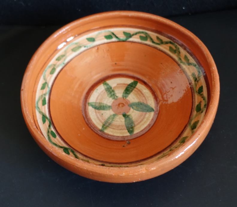 Dva glineni ročno poslikani latvici, slovenski izdelek.