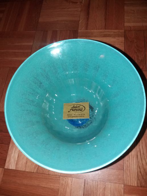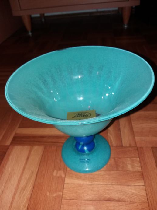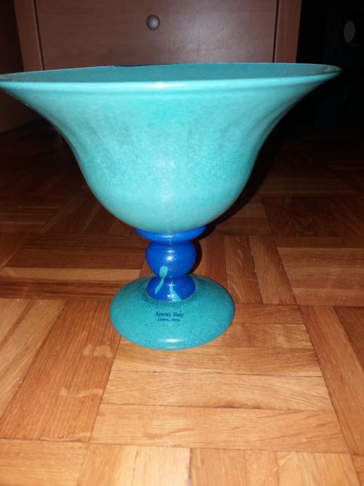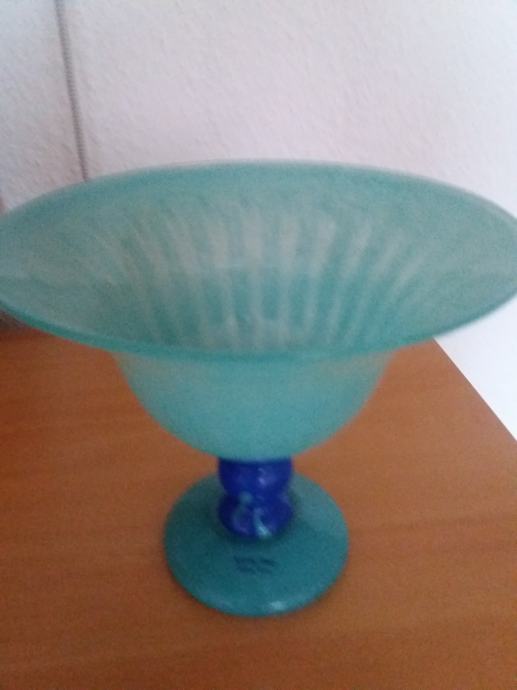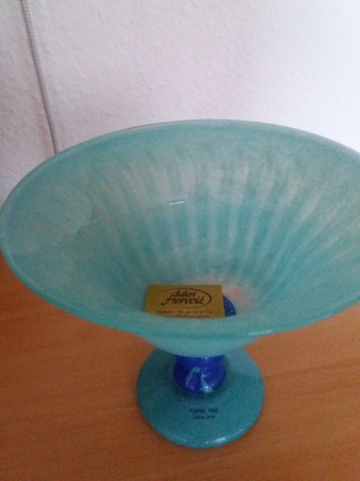 Modra steklena skleda za pecivo, bombone, premer 17 cm, Unikat, iz Norveške, NOVA