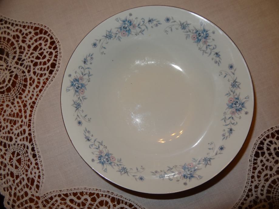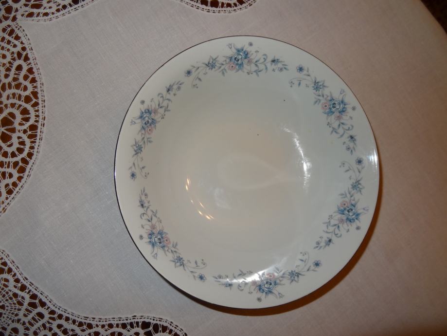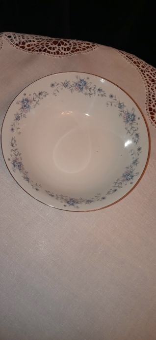 ODLIČNO OHRANJENA SKLEDA ZA SOLATO DIMENZIJ PREMERA 24 cm, VIŠINE 6,5 cm Z LEPIM CVETLIČNIM VZORČKOM IN ZLATIM ROBOM.
