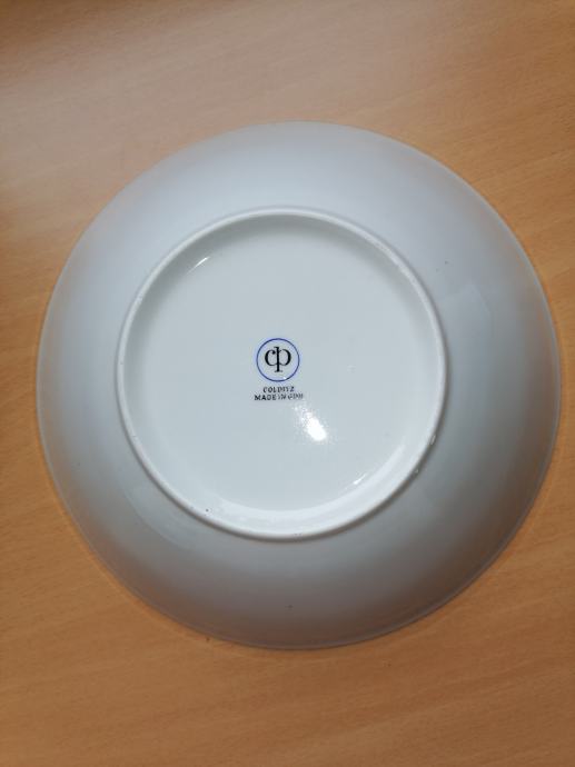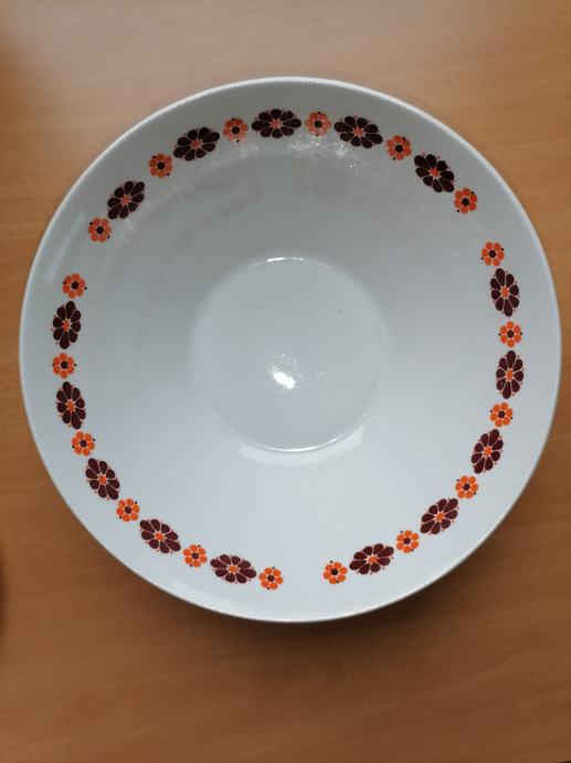Iz nemškega porcelana.Bele barve,v notranjosti pod robom ima cvetlični vzorec v rjavi in oranžni barvi.Namenjena za solate in več drugih jedi.Premer 25cm,višina 12cm.Odlično ohranjena.Tel.064 222 880,osebni prevzem.