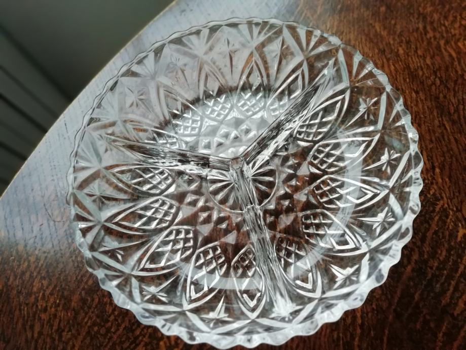 Tridelna kvalitetna brušena skleda, uporabna za razno drobno pecivo,