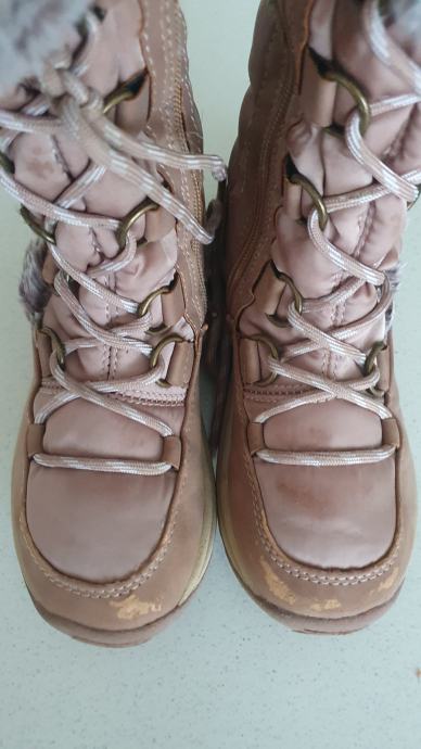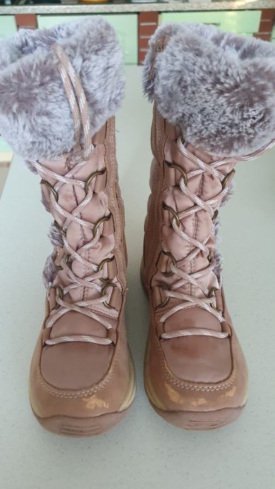 Deklica je nosila škornje 1 sezono kadar je bil sneg. Škornji so nepremočljivi. Obraba je vidna le na sprednjem delu.