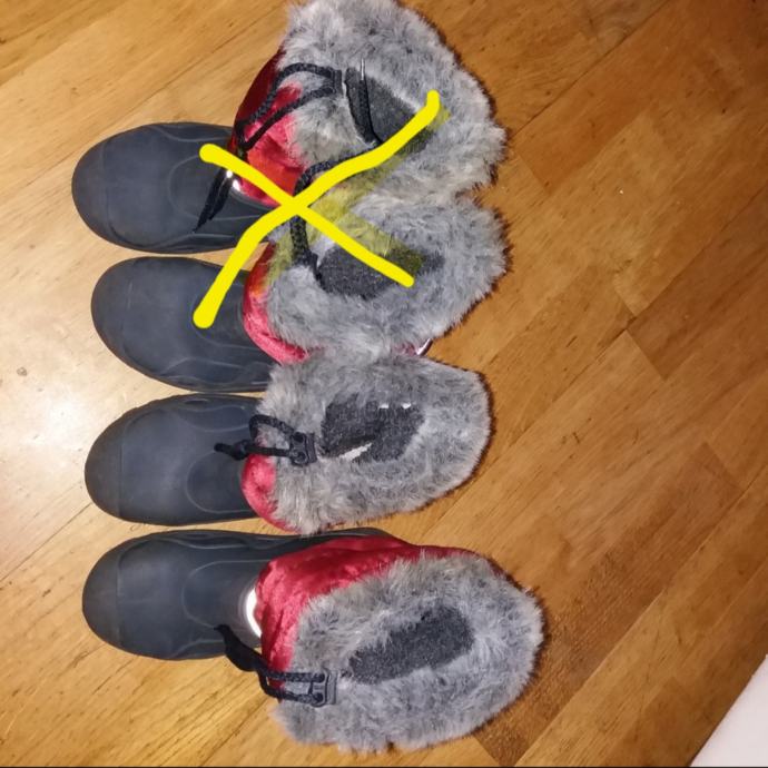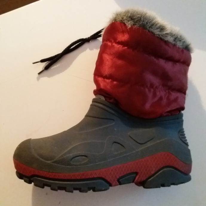 Prodam škornje št.33 dekliške spredaj in zadaj imajo manjši odsev so vinsko rdeče barve in zimske tople slika 3 slikana s flešem da se vidi odsev cena 10e za par .Na voljo samo še en par