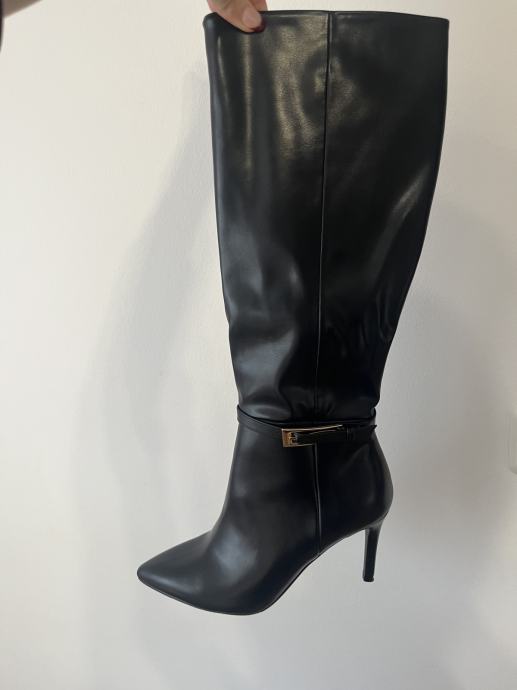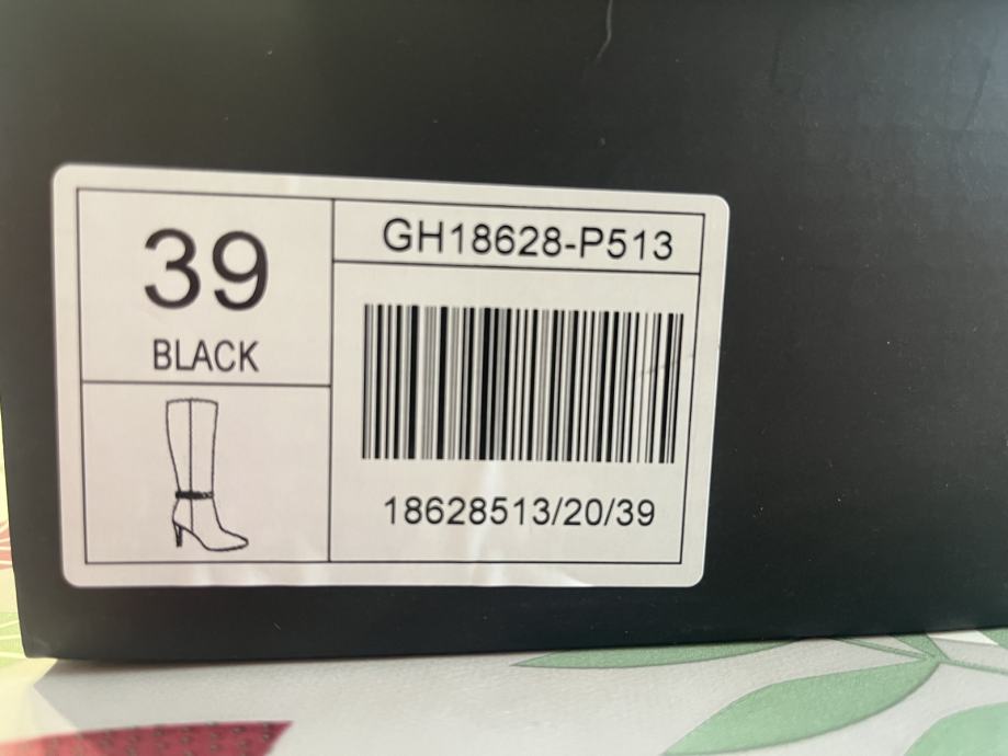 Prodajam elegantne črne ženske škornje z visoko peto, številka 39. Škornji so popolnoma novi, nikoli nošeni – le sprobani.