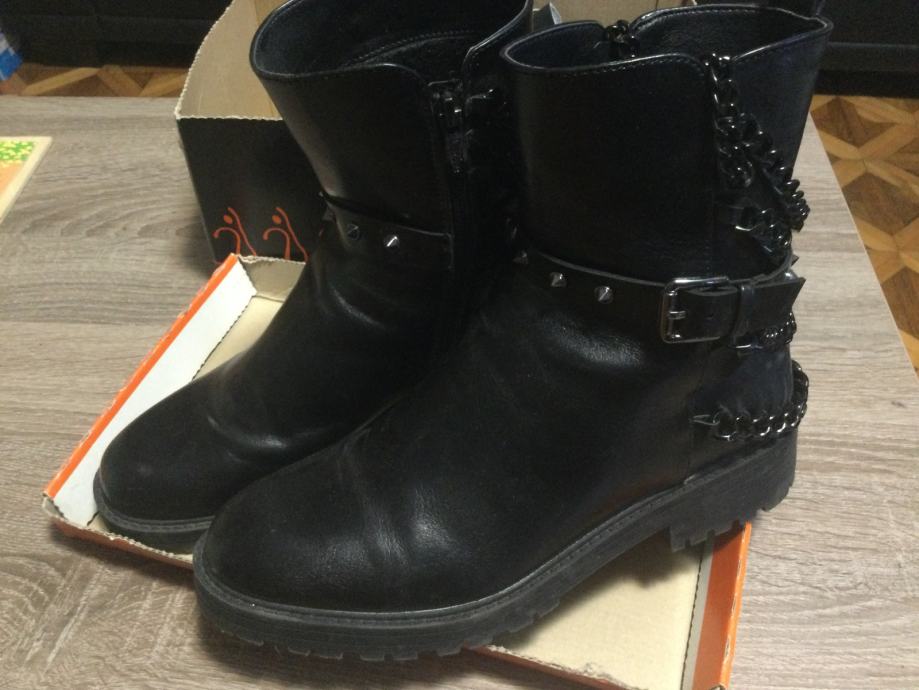 Modni žen. škornji podloženi s tanko podlogo št.41, na 4 verižice