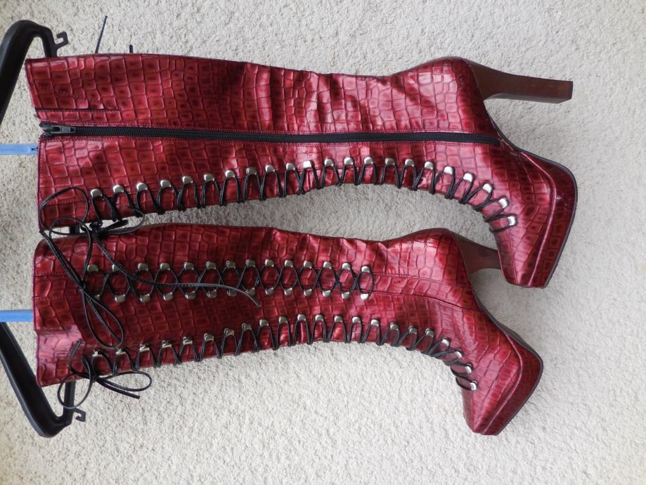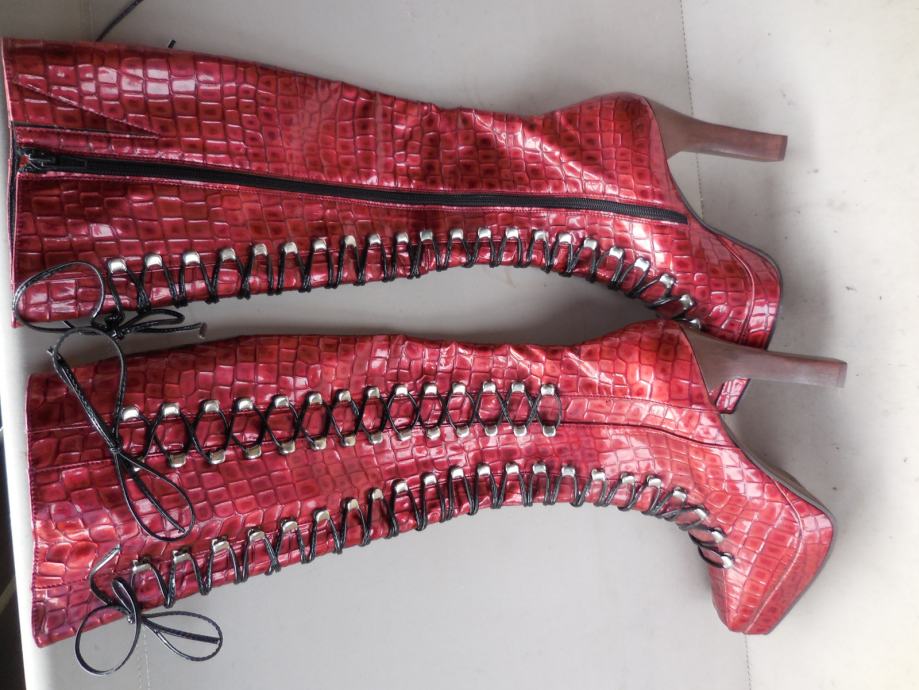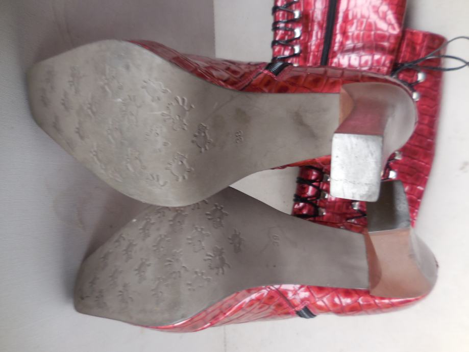 Novi, nikoli obuti visoki škornji No skin peko (Nina Osenar), zapenjajo se z dolgo zadrgo, vezalke so samo okrasne. Dolžina škornja je 53cm.