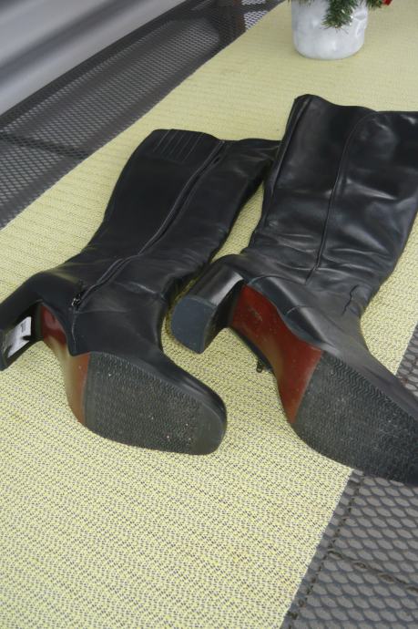 Škornji niso bili nošeni in so v celoti iz usnja, visoki 45 cm + višina pete 6 cm.