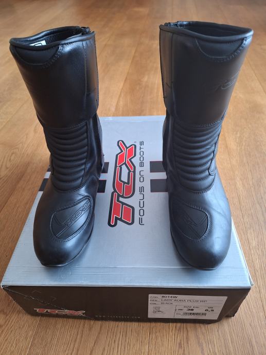 Prodam kot nove malo nošene ženske motoristične škornje TCX Lady AURA PLUS WP. So z nepremočljivo membrano za uporabo v slabem vremenu. Tako je škorenj popoln za vsako vreme. Velkost škornja je 38.