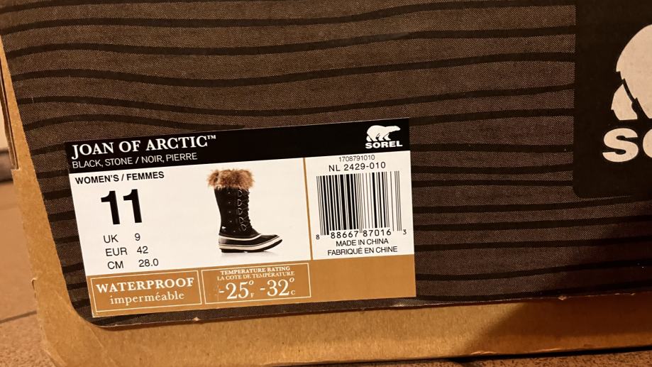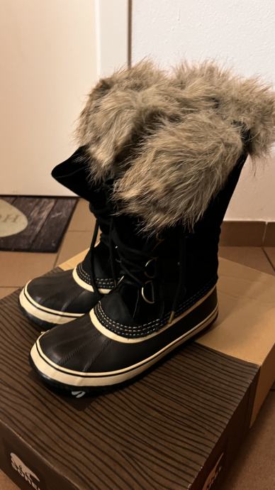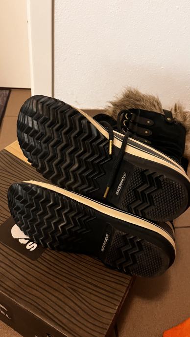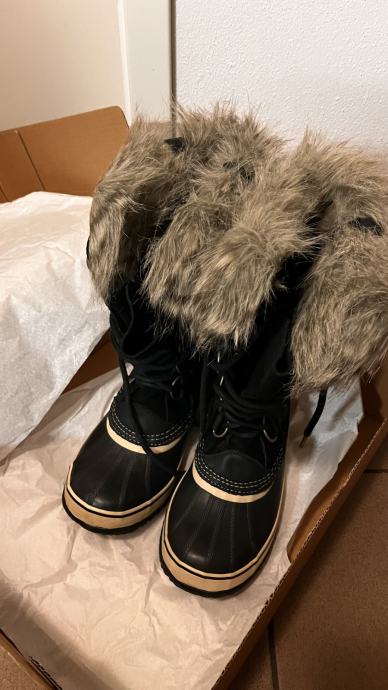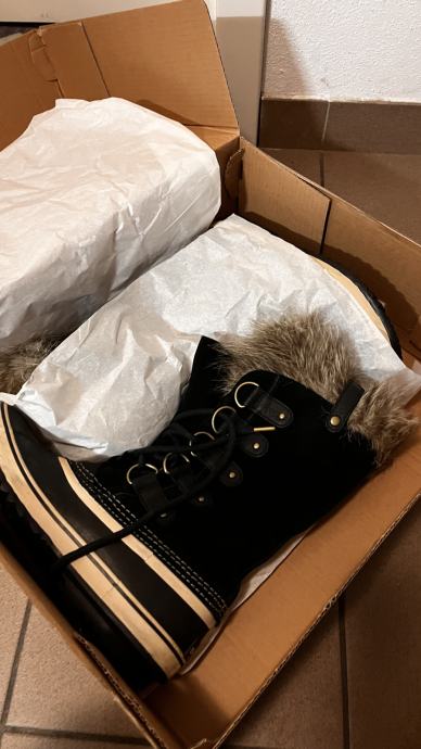 Prodam 3x obute škornje Sorel Joan of Arctic, ker so mi preveliki. Škornji so izdelani iz vodoodbojnega semiša z zatesnjenimi šivi . Za dober oprijem poskrbi gumijast podplat.