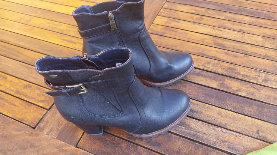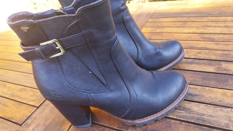 Tom Taylor - Črni srednje visoki gležnarji št. 40 so odlično ohranjeni, nošeni le nekajkrat. Višina pete je 8 cm. Cena novih je bila 39,90 evra. Osebni prevzem v CE ali po pošti. Kupec krije stroške pošiljanja. Plačilo na TRR, flika ali gotovina ob osebnem prevzemu. Poglej ponudbo še drugih visokih škornjev, ki jih prodajam na bolhi. Vprimeru naročila obeh parov dodatno 15% popusta.