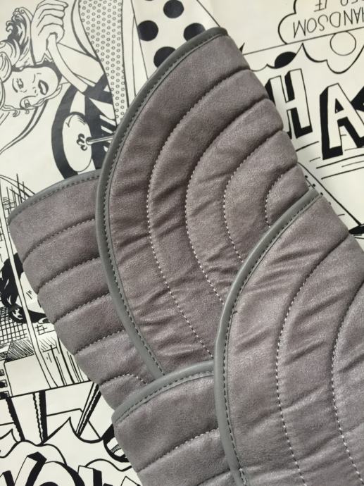 Zgoraj so zaključeni s sivim usnjenim obšitim robom, sprednji del je malo višji od zadnjega.