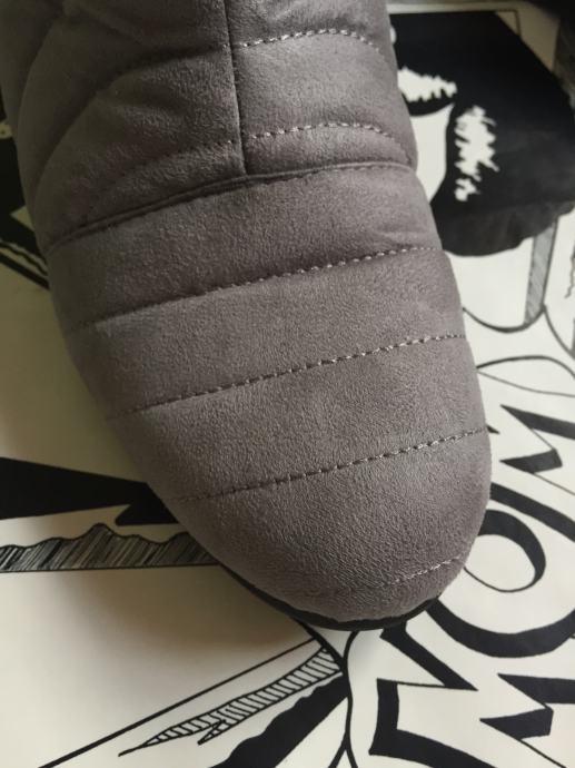 Zgornji material je tekstil z mehkim polnilom, svetlo sive barve, prešit s sivo nitjo v polkrožnem geometrijskem vzorcu.