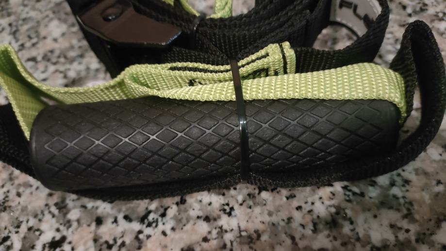 Za pritrditev ima velik in močan karabin ter robustne sponke za nastavitev dolžine traku glede na višino uporabnika in način vadbe. V prilogi je nastavek za vadbo med hišnimi vrati, knjižica za vajami in platnena torbica za hrambo. Cena 99 eur.