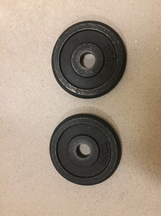 Prodam uteži 2 kosa po 2,5 kg Vsaka utež stane 8 Eur. Skupaj staneta oba 16 Eur.