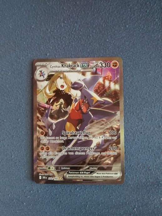 Nemška pokemon karta Cynthia's Garchomp ex / Knakrack ex 232/182, odprta in pospravljena (nikoli igrana).