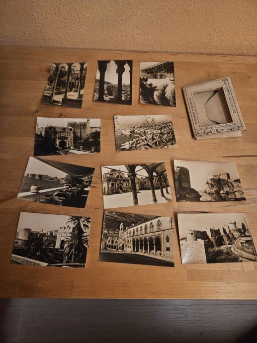 Prodamo set z 11 crno belimi fotografijami. Mini razglednice so zapakirane v papirnatem ovitku, verjetno iz 60 let, našli jih v stari hiši. Lepo ohranjeni, s kulijem nekaj napisano na čelni strani ovitka.