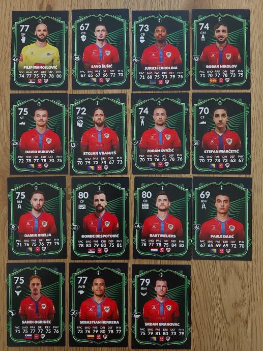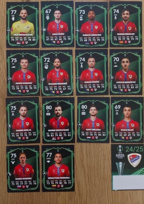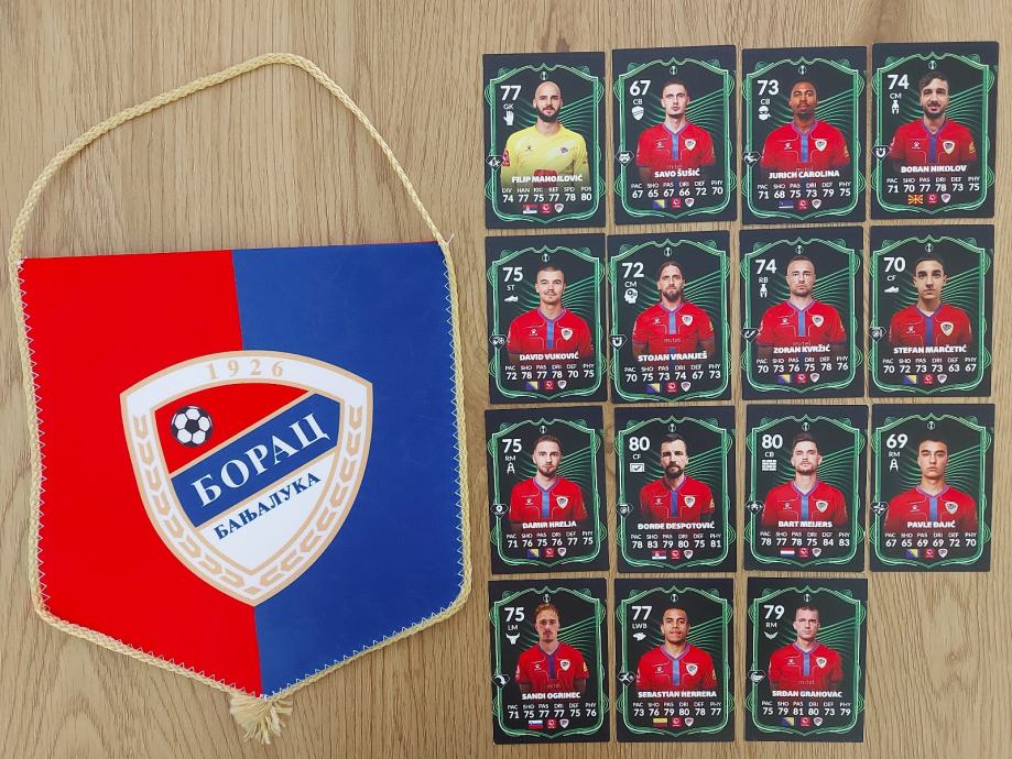 Zastavica večji format dobljena na tekmi od ekonoma Borca. 15 kartic igralcev Borca konferenčna liga. Vse je novo ohranjeno.