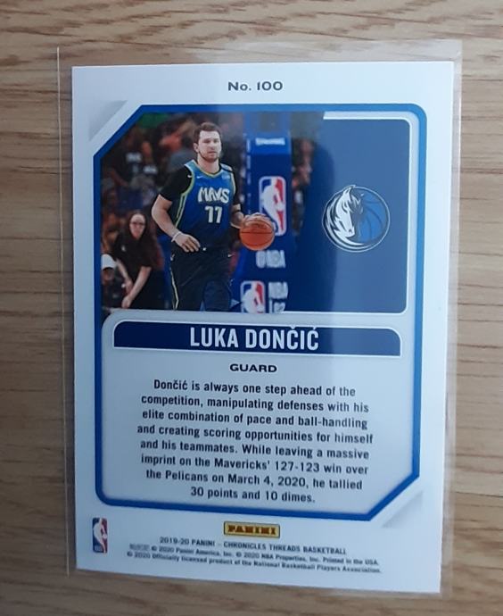 Luka Doncic 2019-20 Panini Chronicles Threads Basketball No100 Dallas