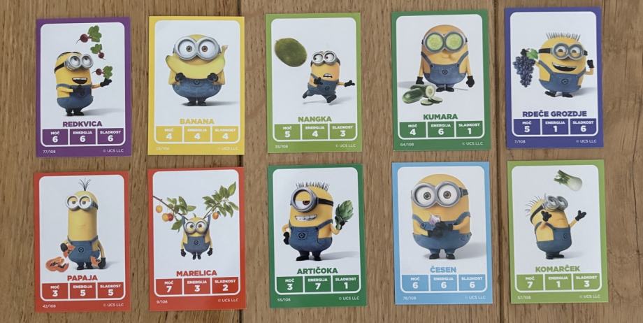 Prodamo minion kartice katere so namenjene zbiranju v albumu ali pa igranju družabne igre, kjer s karticami tekmuješ po moči, energiji in sladkosti.
