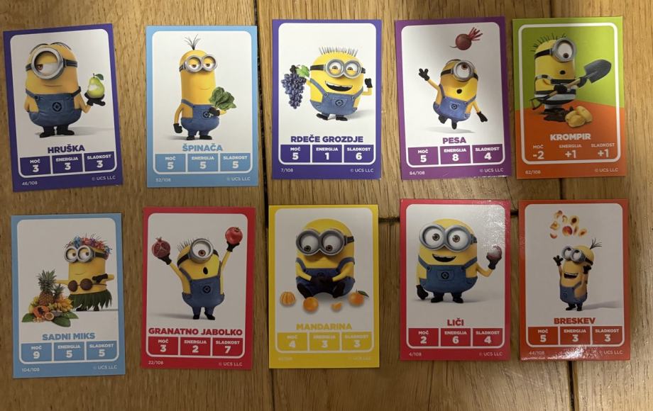 Prodamo minion kartice katere so namenjene zbiranju v albumu ali pa igranju družabne igre, kjer s karticami tekmuješ po moči, energiji in sladkosti.