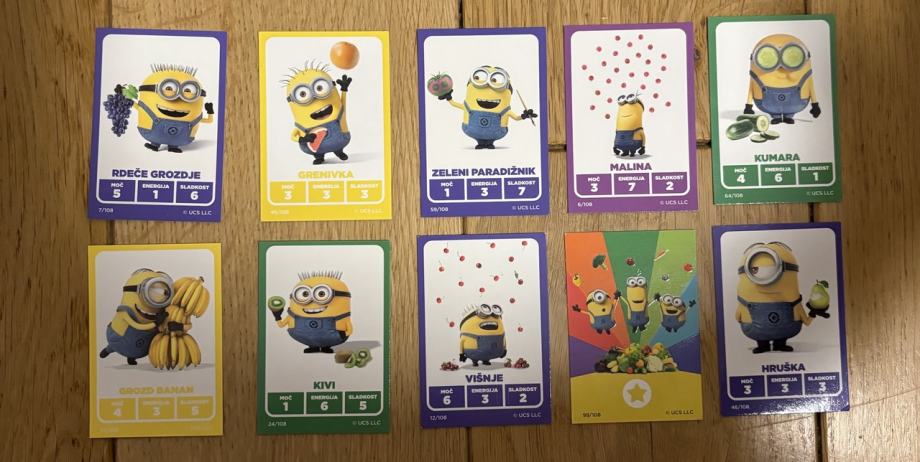 Prodamo minion kartice katere so namenjene zbiranju v albumu ali pa igranju družabne igre, kjer s karticami tekmuješ po moči, energiji in sladkosti.
