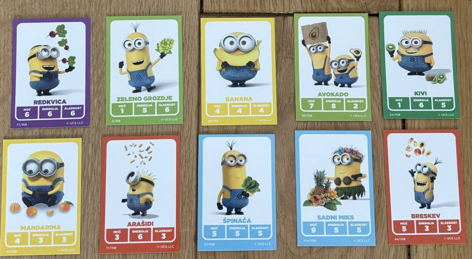 Prodamo minion kartice katere so namenjene zbiranju v albumu ali pa igranju družabne igre, kjer s karticami tekmuješ po moči, energiji in sladkosti.