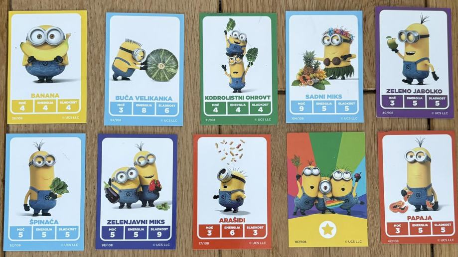 Prodamo minion kartice katere so namenjene zbiranju v albumu ali pa igranju družabne igre, kjer s karticami tekmuješ po moči, energiji in sladkosti.