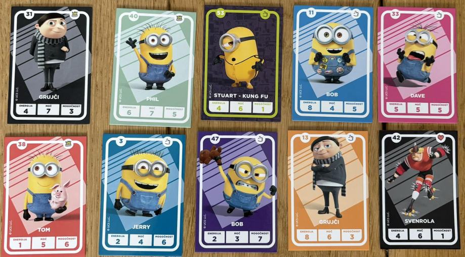 Prodamo minion kartice katere so namenjene zbiranju v albumu ali pa igranju družabne igre, kjer s karticami tekmuješ po moči, energiji in mogočnosti.