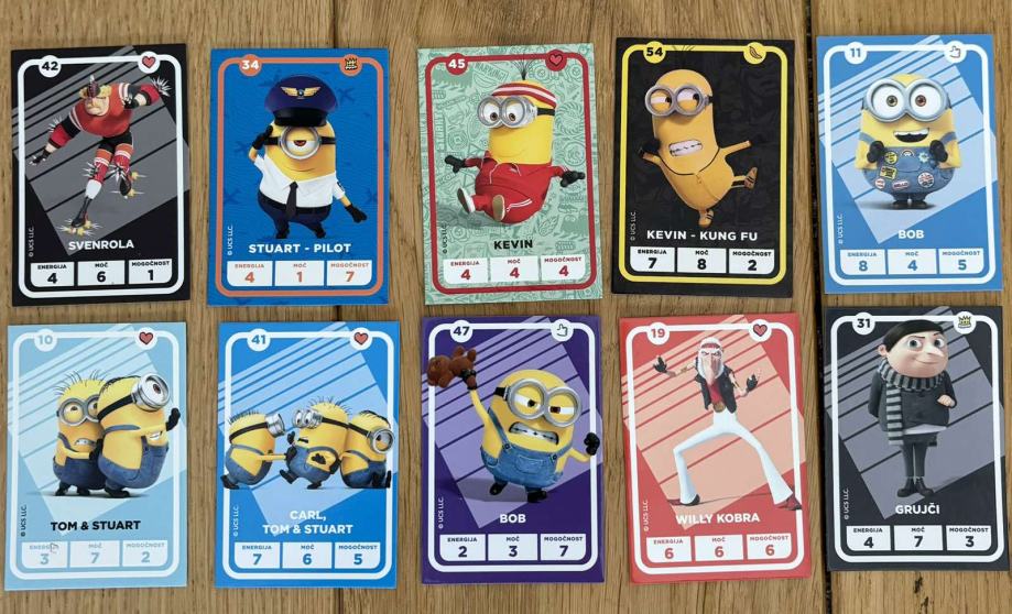 Prodamo minion kartice katere so namenjene zbiranju v albumu ali pa igranju družabne igre, kjer s karticami tekmuješ po moči, energiji in mogočnosti.