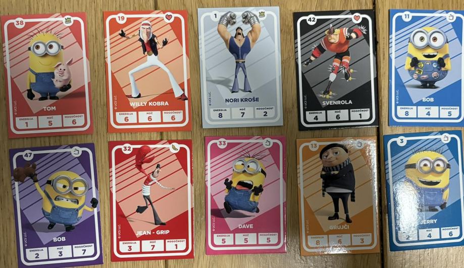 Prodamo minion kartice katere so namenjene zbiranju v albumu ali pa igranju družabne igre, kjer s karticami tekmuješ po moči, energiji in mogočnosti.