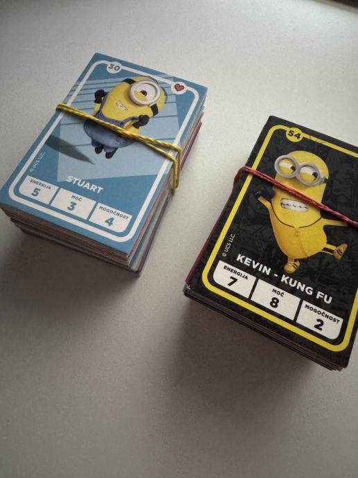 Prodamo nove kartice minioni, ki služijo kot zbiratelje ali pa tudi kot navadne karte za igranje. Igrajo se z energijo, močjo in mogočnostjo, ki je zapisna na karticah.