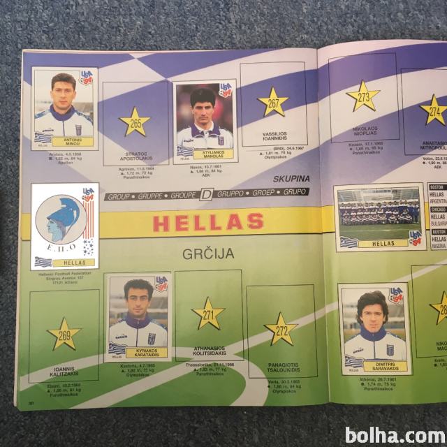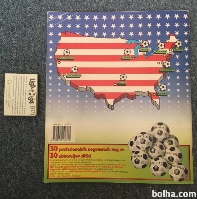 Ugodno prodam lepo ohranjen Panini album iz svetovnega nogometnega prvenstva v Ameriki 1994. Zraven dodam 26 različnih sličic za menjavo.