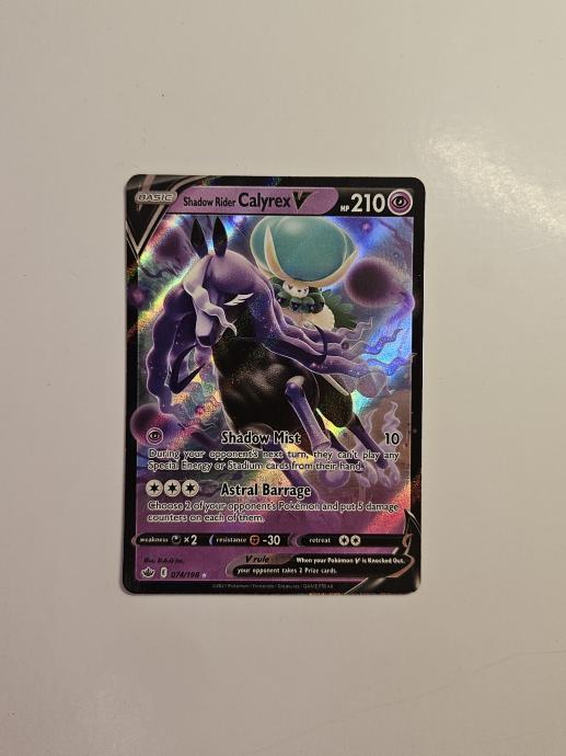 Redka Pokémon karta - Shiny V Prodajam posebno Shiny VMAX Pokémon karto, ki ima sijoč, bleščeč učinek. Karta je v odličnem stanju.