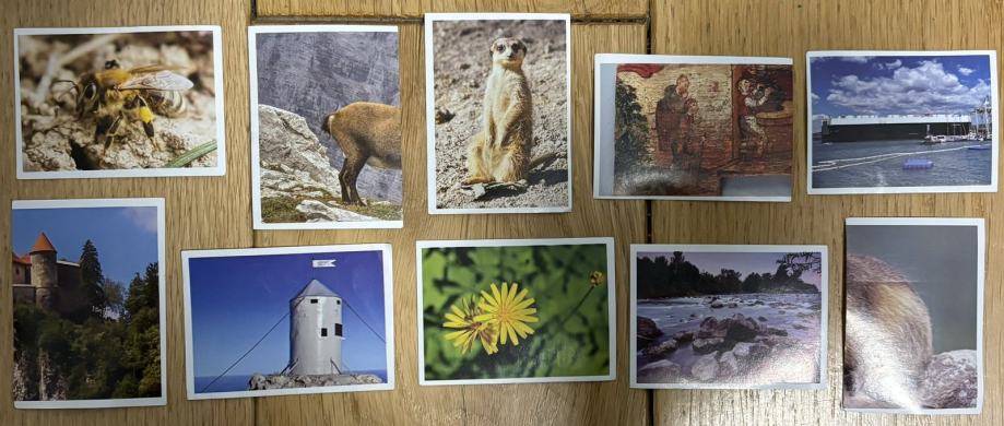 Prodamo nove sličice iz albuma Maček Muri spoznava Slovenijo.