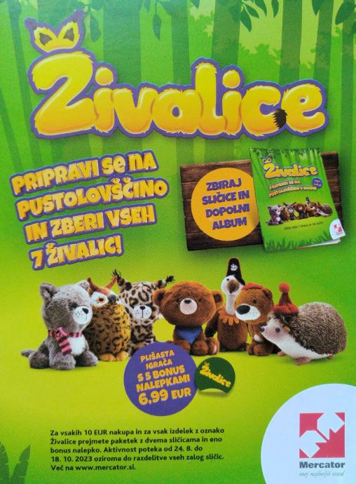 Sličice/nalepke ŽIVALICE (skoraj vse številke)-Mercator (avgust 2023)