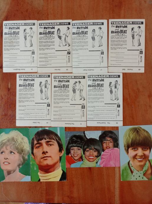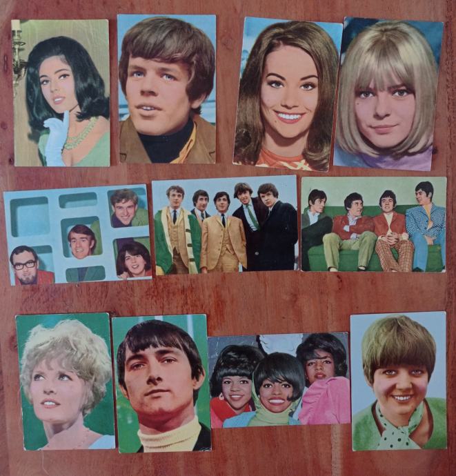 Prodam stare sličice pevcev, filmskih igralcev teenager - news, različne številke, 60 leta . Cena je za 11 sličic.
