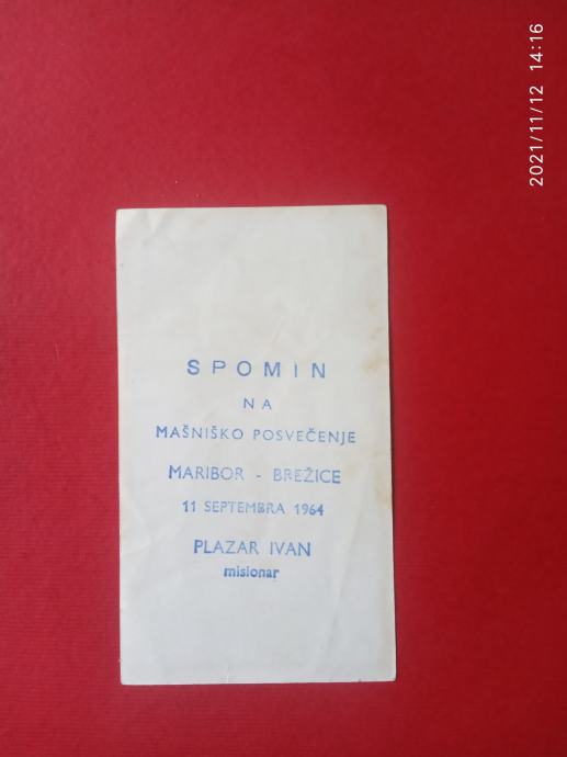 Spomin na mašniško posvečenje,Maribor-Brežice.Plazar Ivan-misijonar