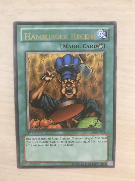 Prodam originalno karto Yugioh Hamburger Recipe. Ohranjenost vidna na sliki. Prodam tudi veliko drugih Yu-Gi-Oh! kart.